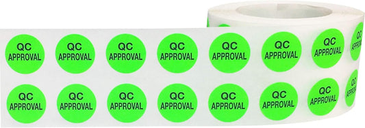 AusPacks Quality Control Approval Stickers, QC Tester Labels on Fluorescent Green Paper, Suitable for Warehouse and Manufacturing, 1/2 Inch Round, 500 Labels Per Roll